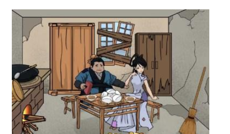 1.汉字找茬王大郎中奖花光所有的奖金先将元宝拖到破损墙面。
