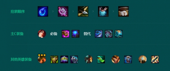 女枪装备不是唯一的。但是回蓝装是必须的。蓝buff+鬼书的组合也是可以的。泰坦推荐用法袍,能够提高前排坦度的同时削减魔抗